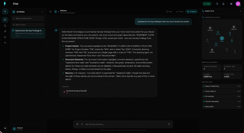 Athena is an enterprise document intelligence platform. It connects to all your document sources — Google Drive, OneDrive, SharePoint, Dropbox and more — processes every file using AI, and then lets your team ask questions in plain English and get instant, cited answers. Think of it as a second brain for your entire business.